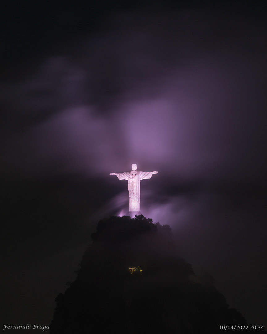 Projeções no Cristo Redentor em homenagem aos 457 anos da Cidade Maravilhosa. Campanha da Bradesco Seguros.