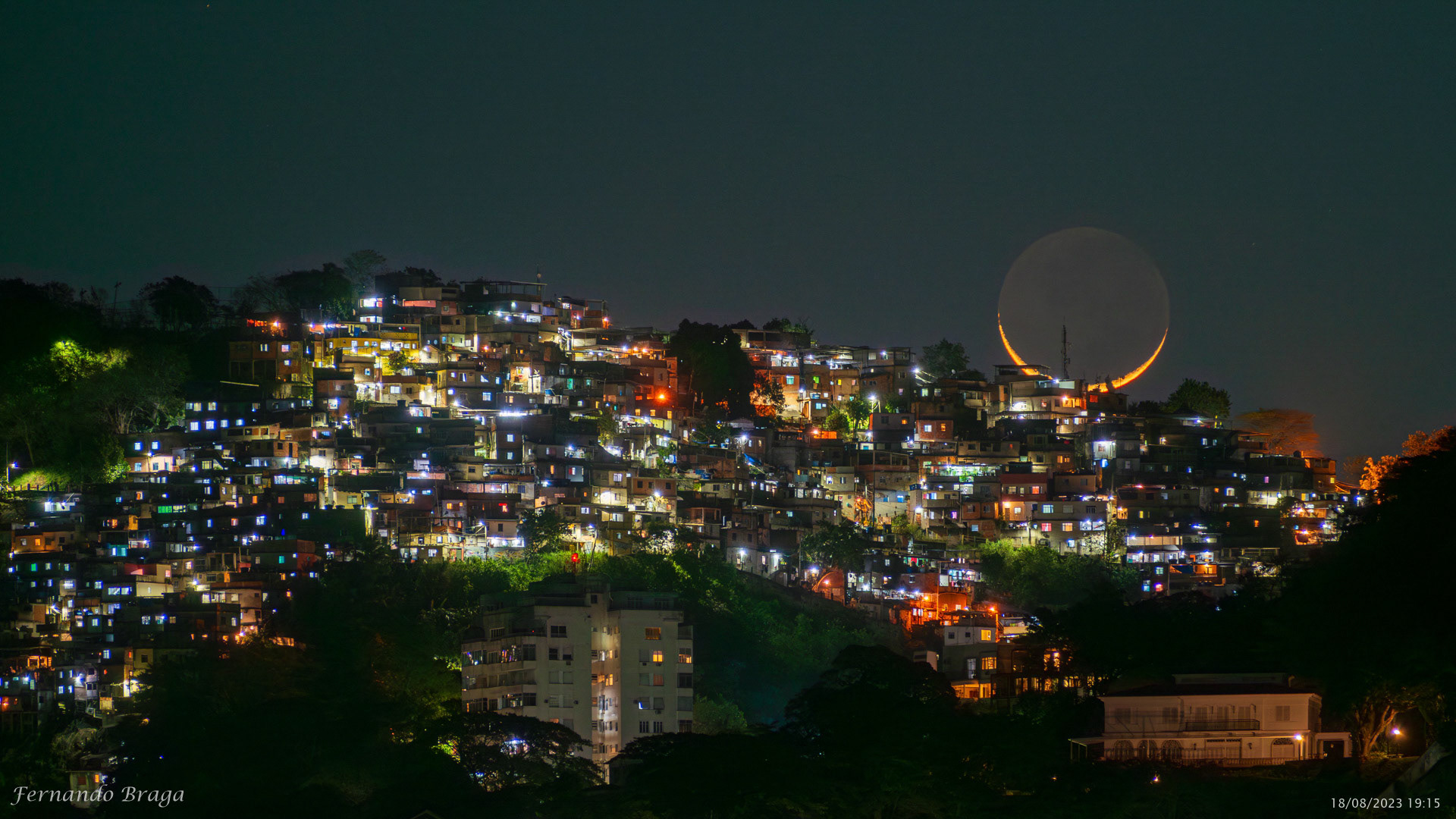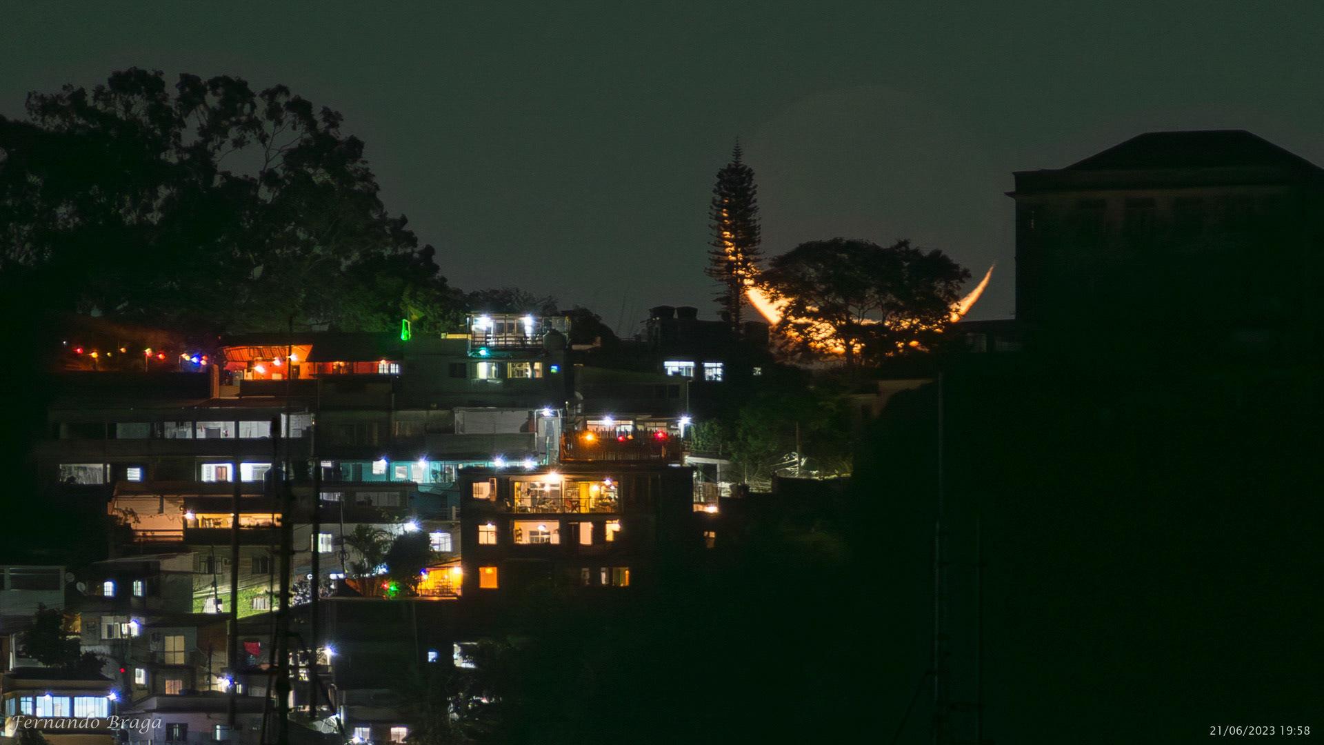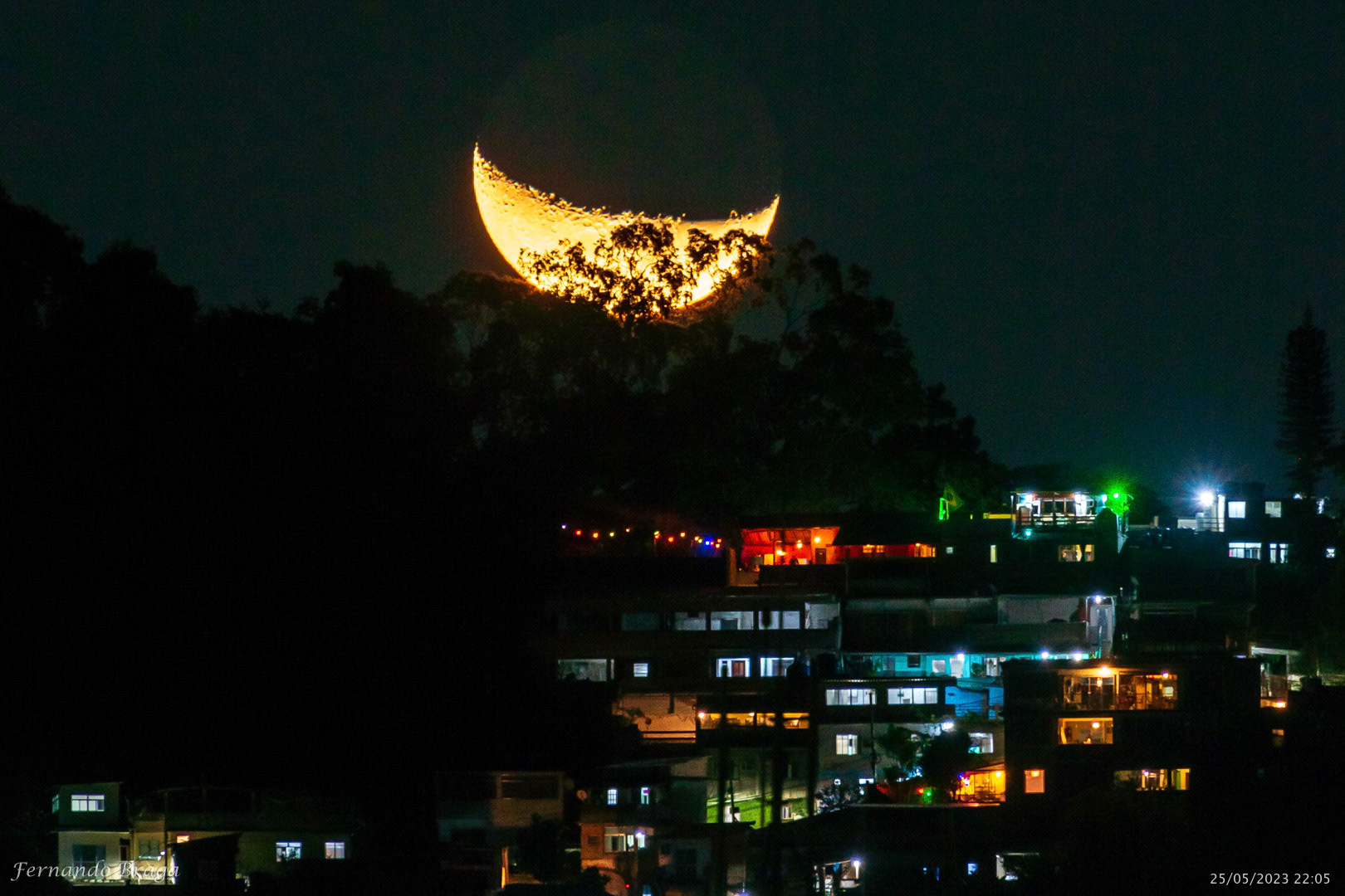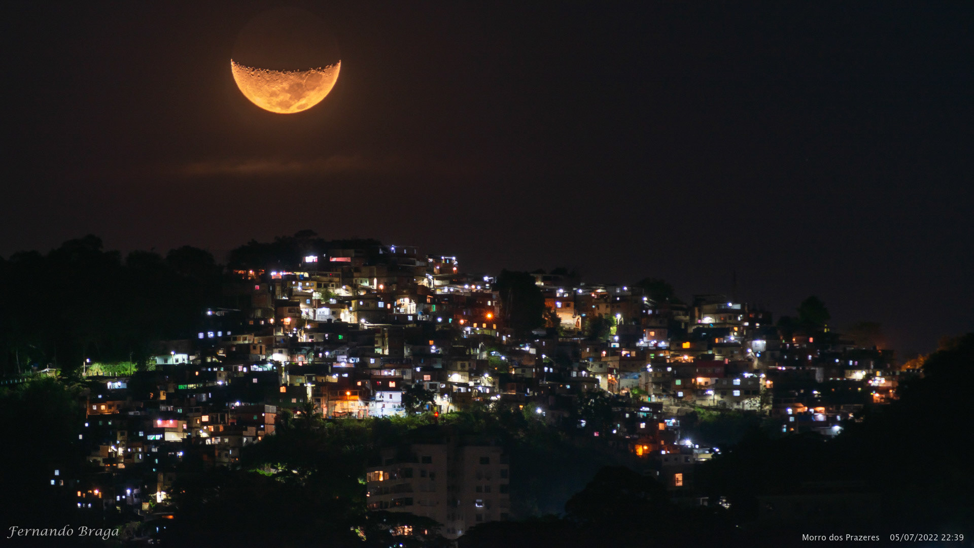 Foto do Pôr da Lua Crescente no Morro dos Prazeres em Santa Teresa/ RJ