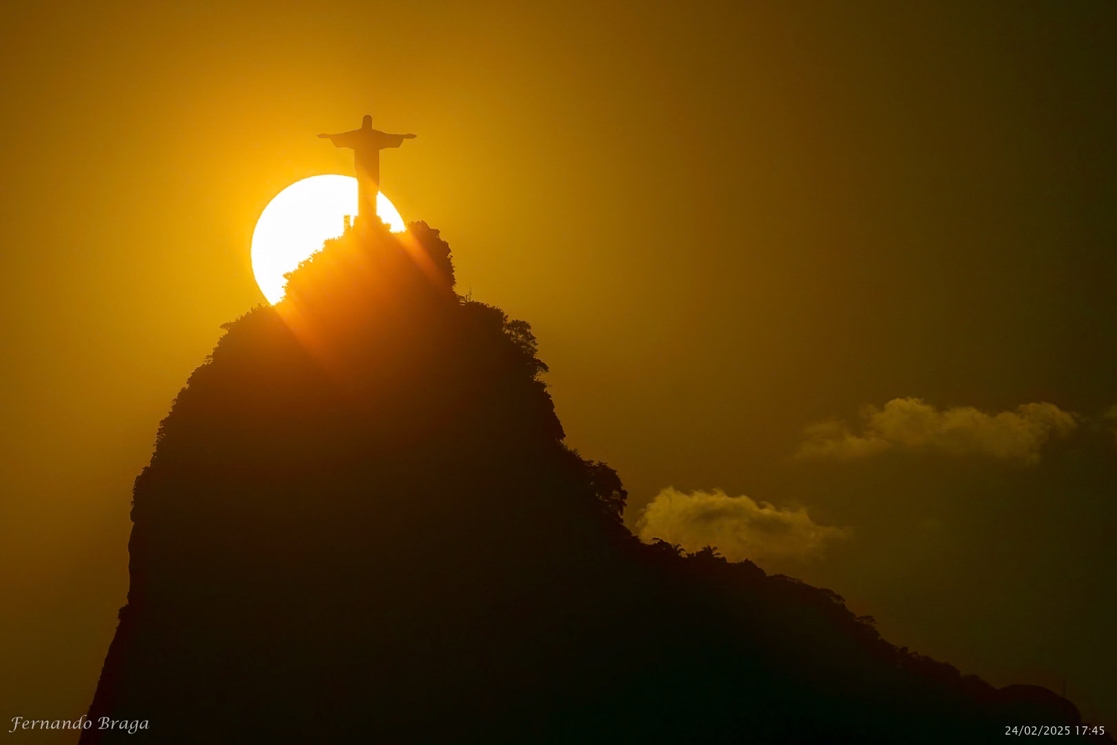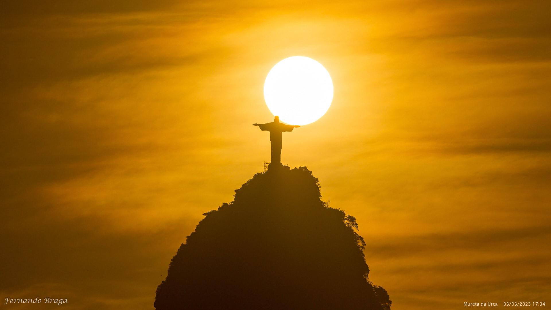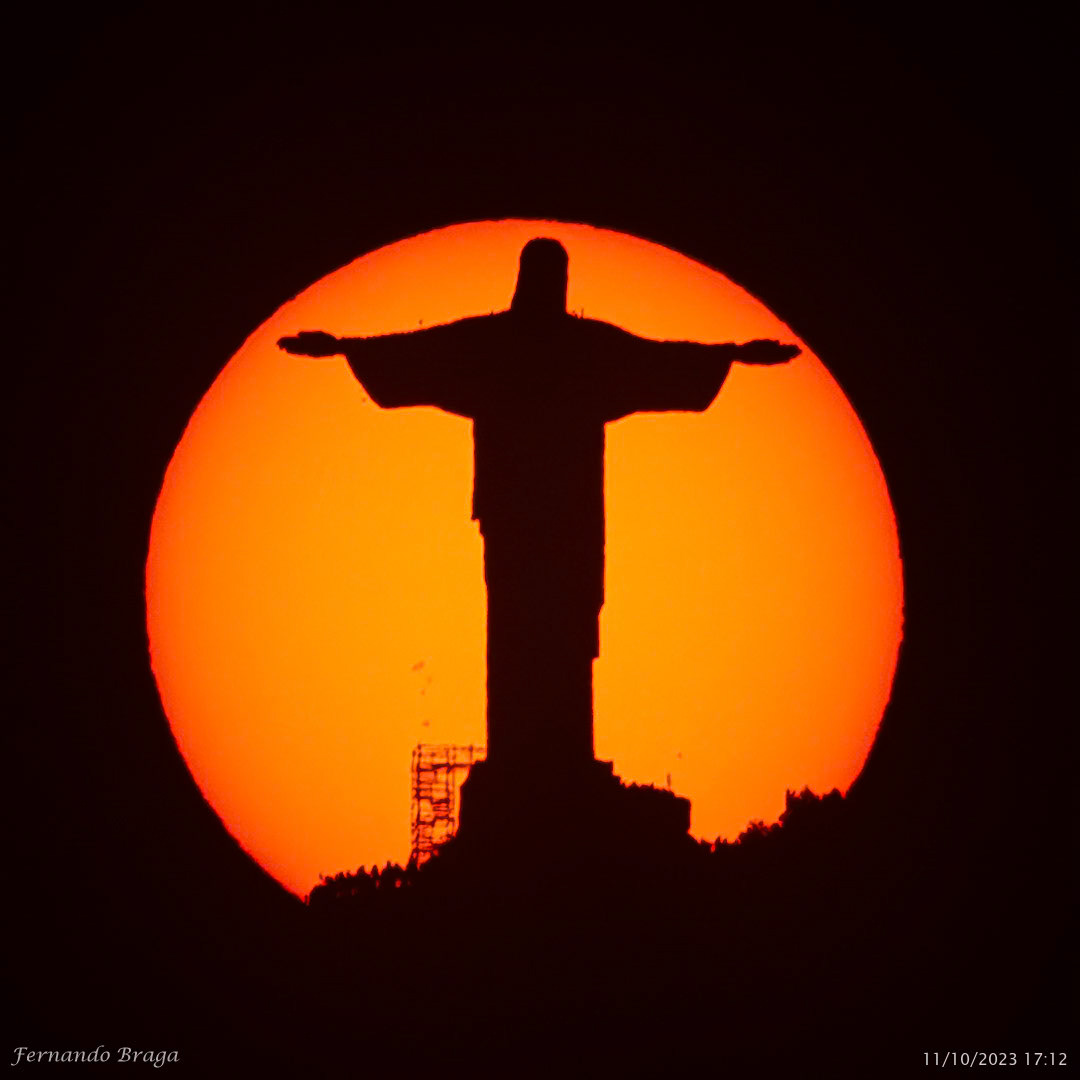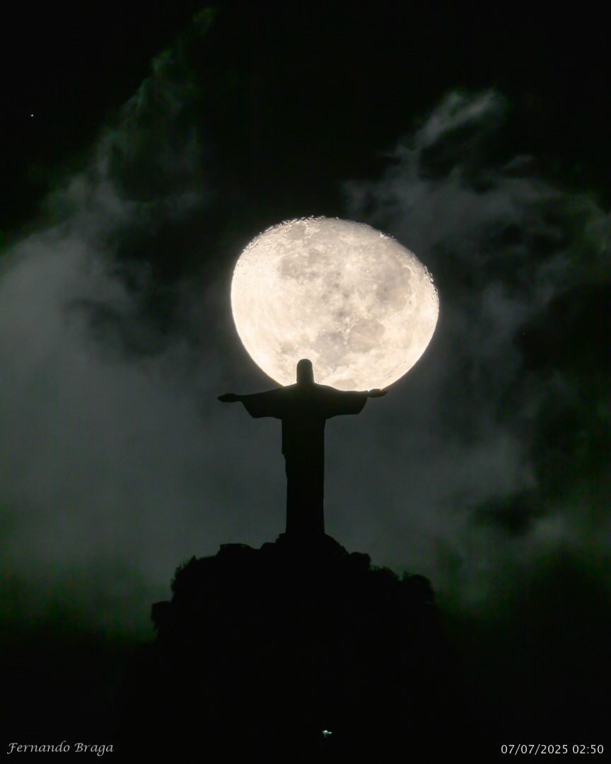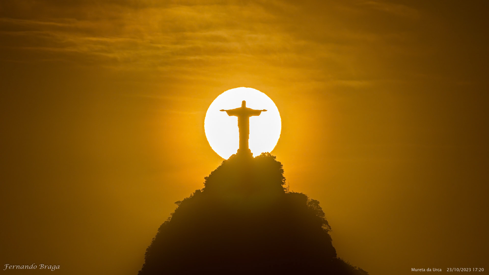 Um encontro celestial entre o planeta Vênus, a Lua Crescente e o Cristo Redentor.