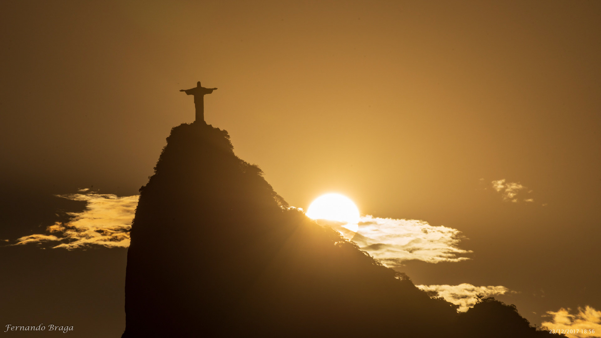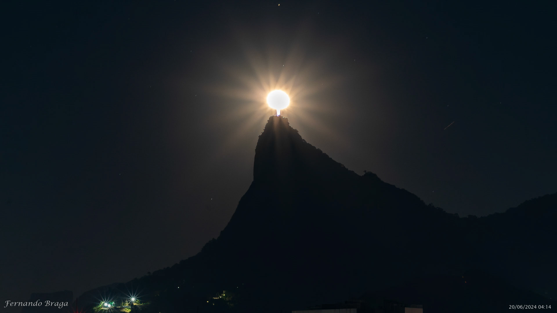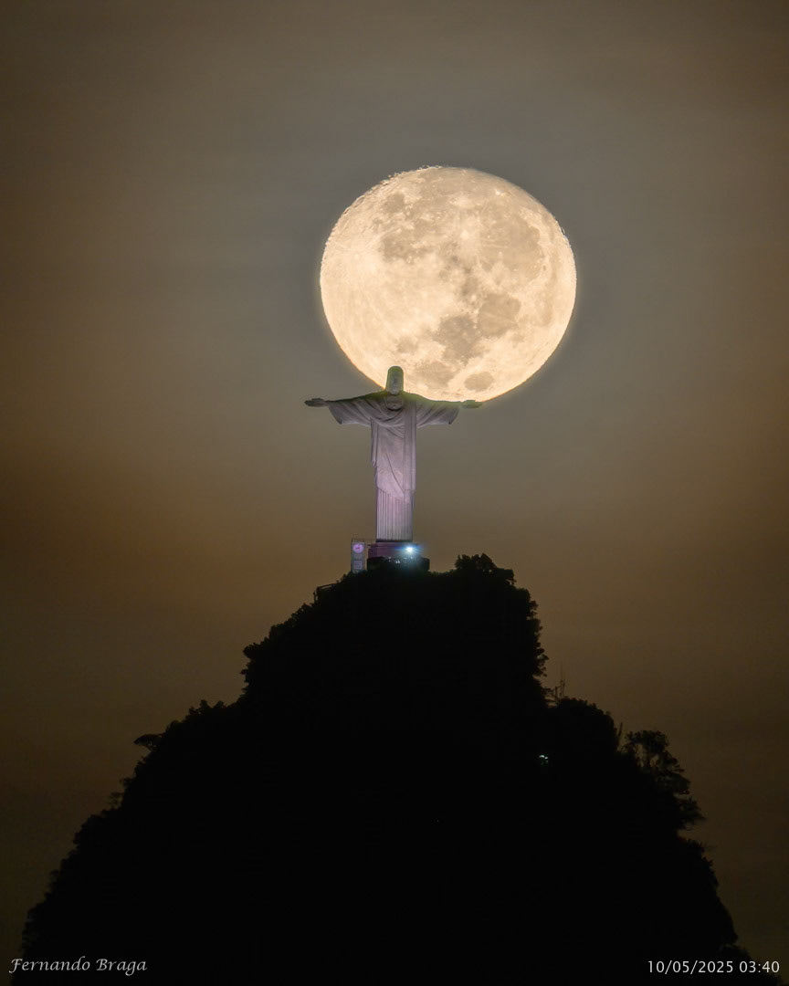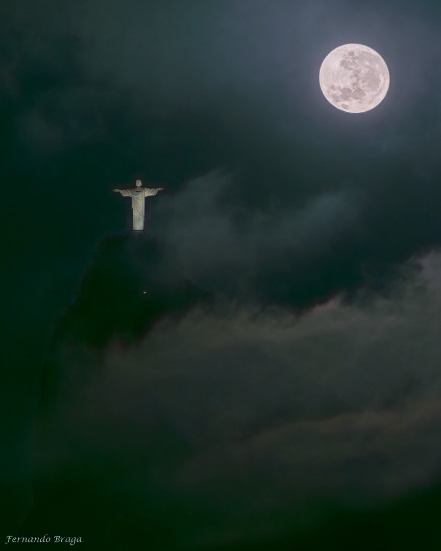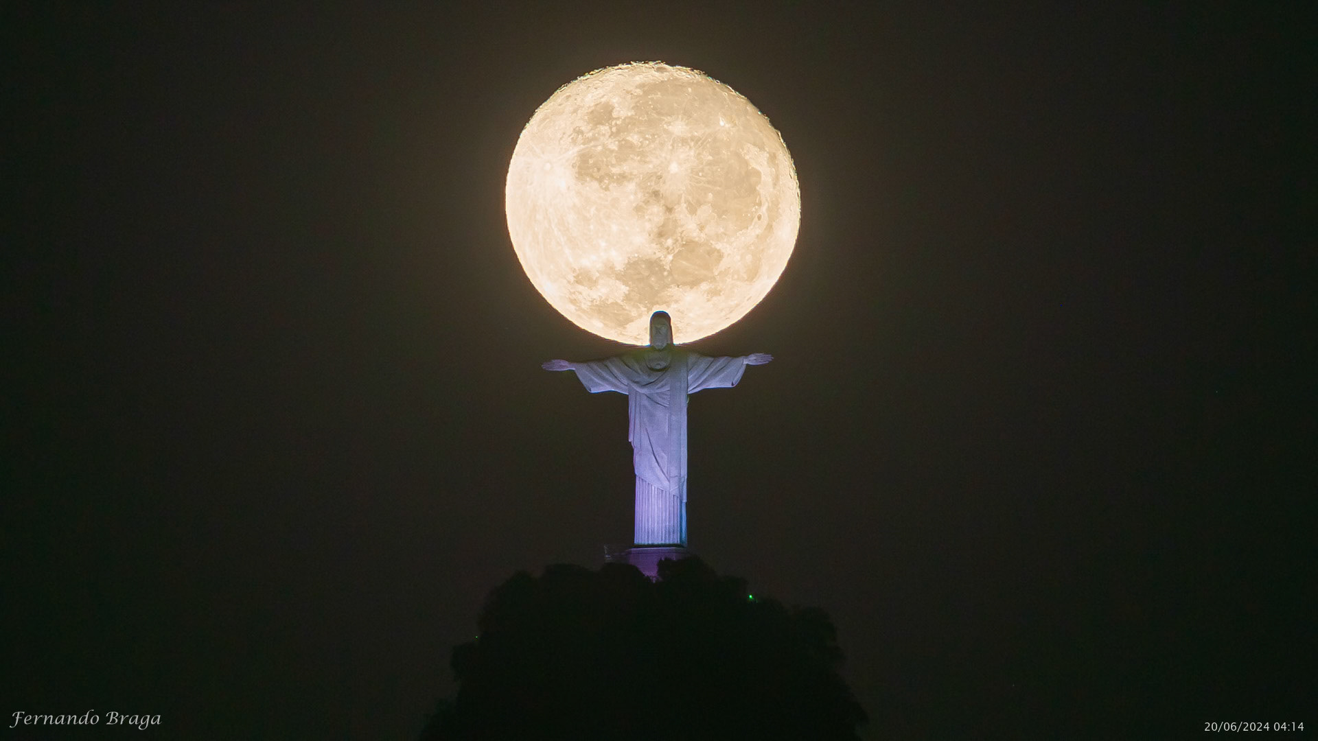 Encontro da última super lua de 2021 cravando seu centro na cabeça do Cristo Redentor ao nascer do sol, registrada da minha casa no bairro do Flamengo, Rio de Janeiro/RJ, Brasil.
