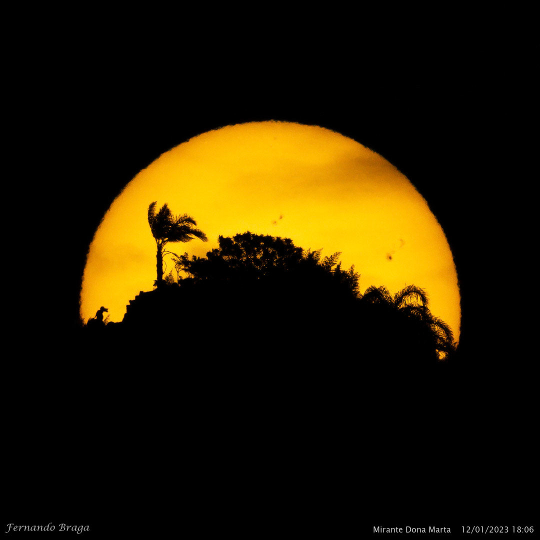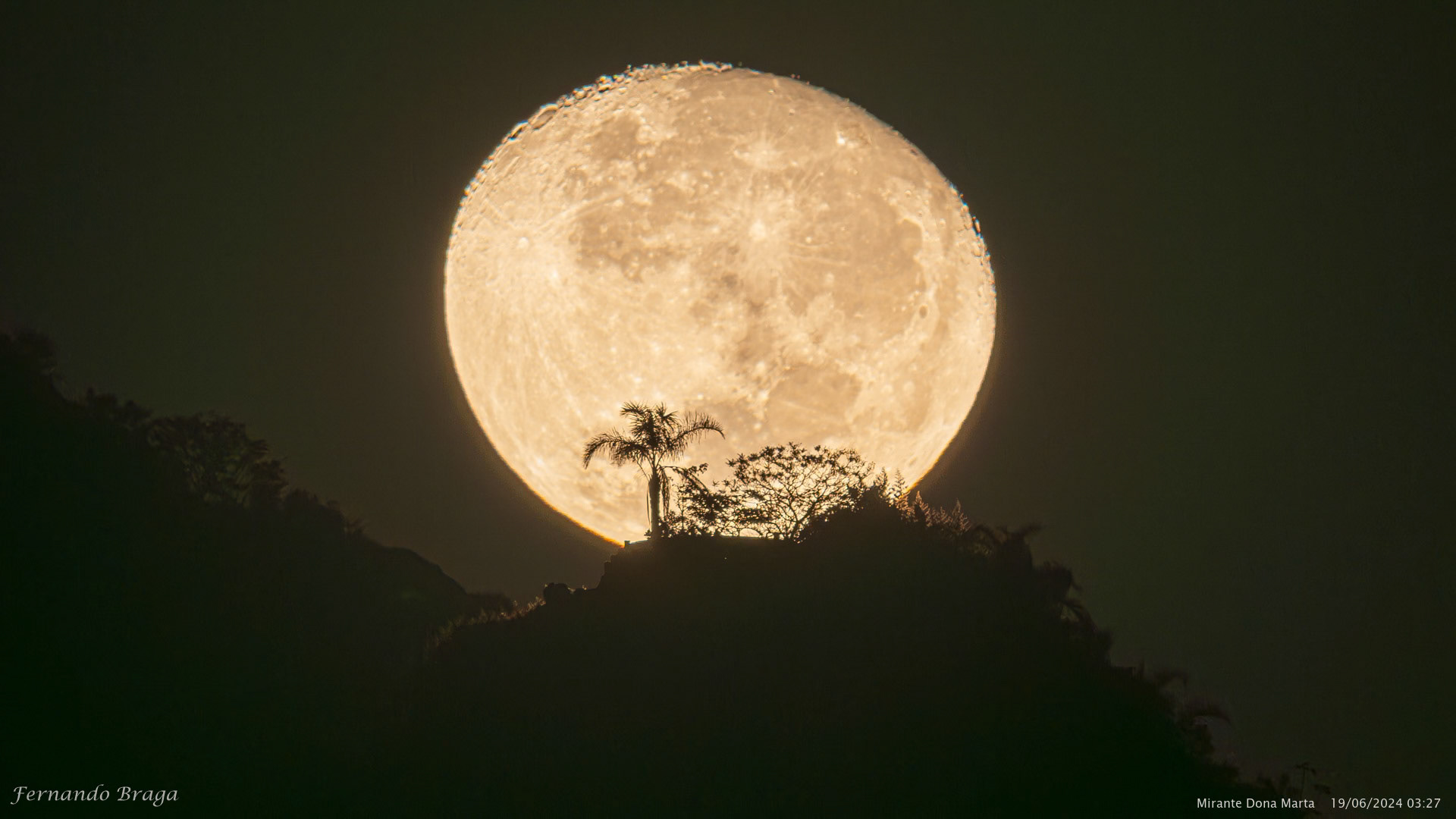A primeira Lua Cheia do ano se pondo em Santa Teresa, Rio de Janeiro/RJ.