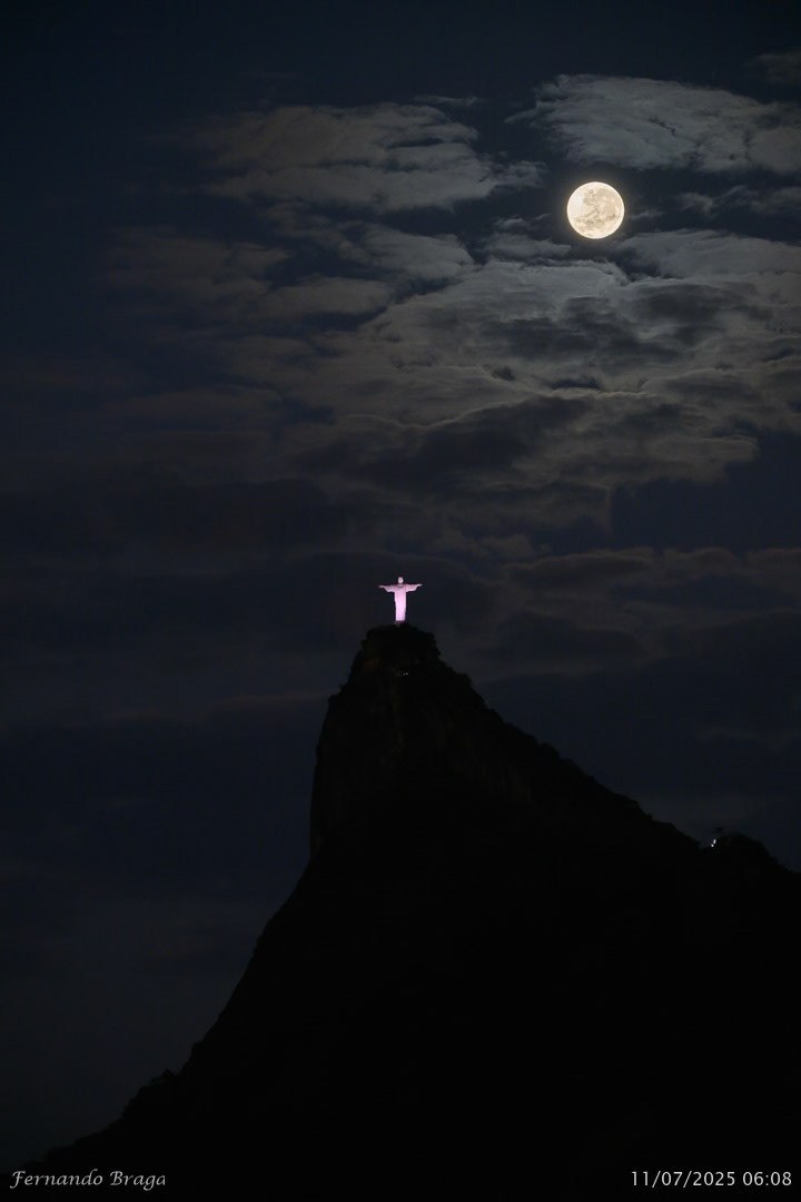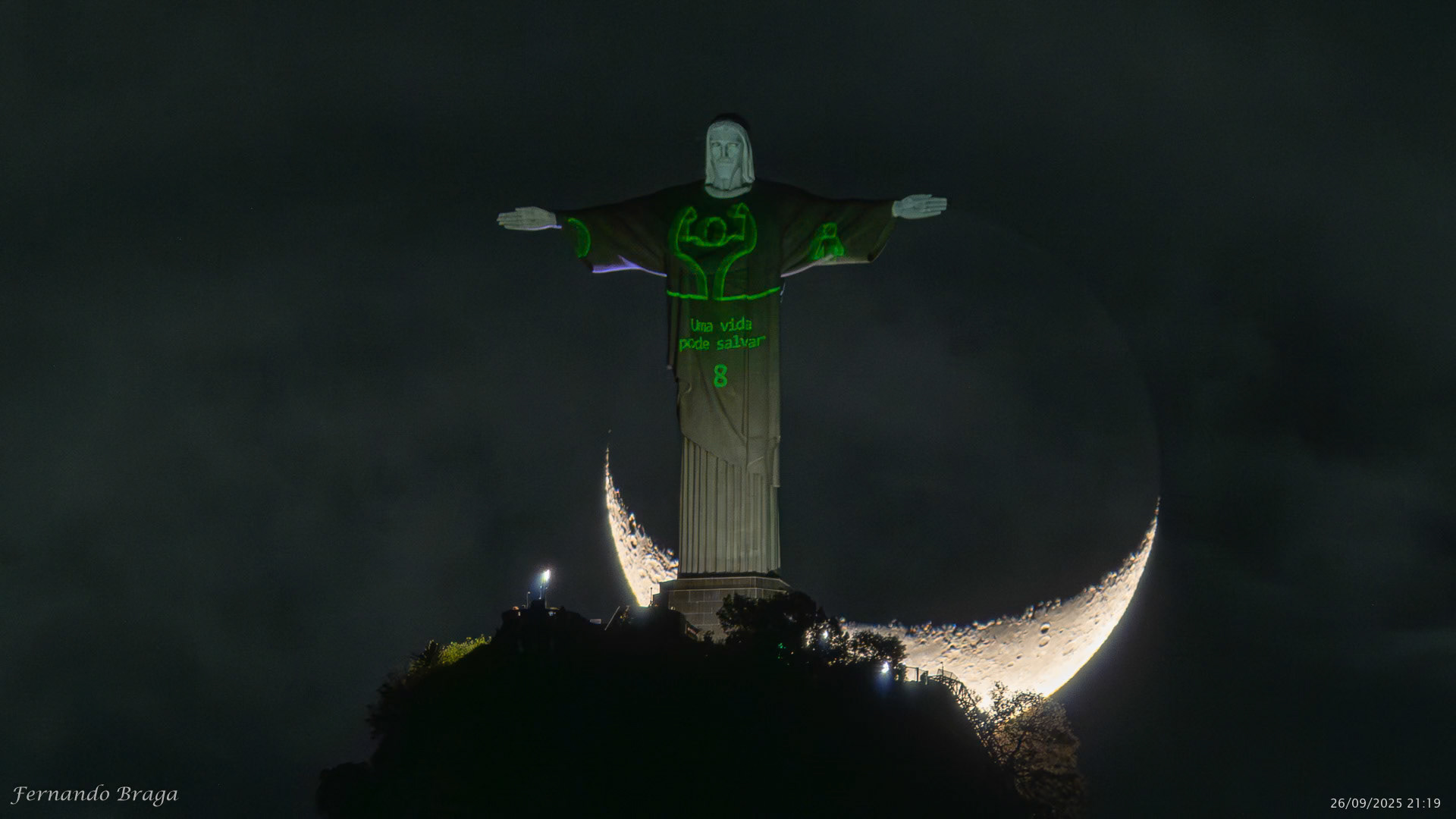 Na noite deste domingo o Cristo Redentor do Corcovado e de Itaperuna foram ambos iluminados de azu, compondo com a Lua Crescente.