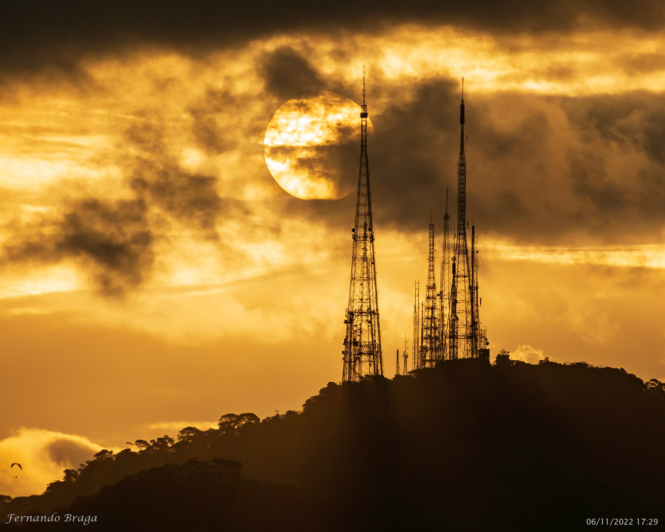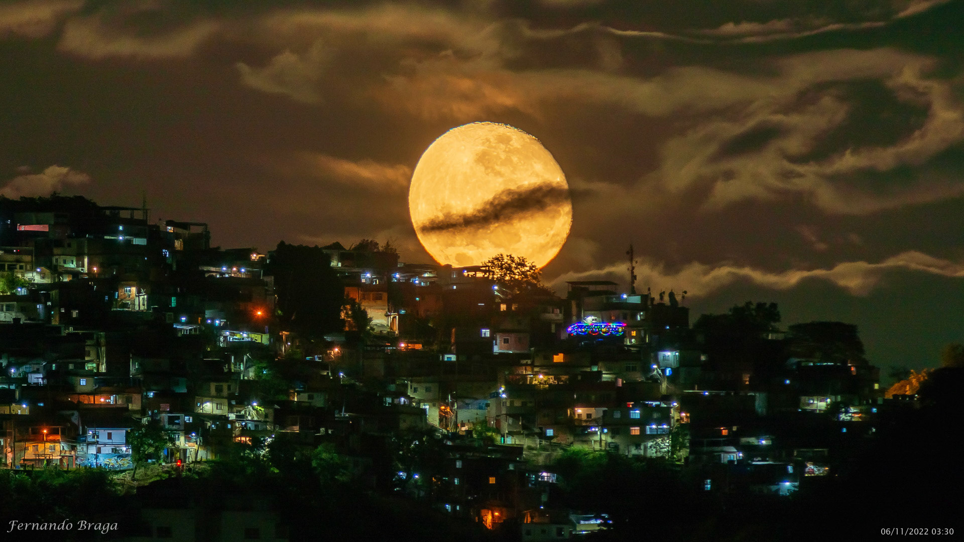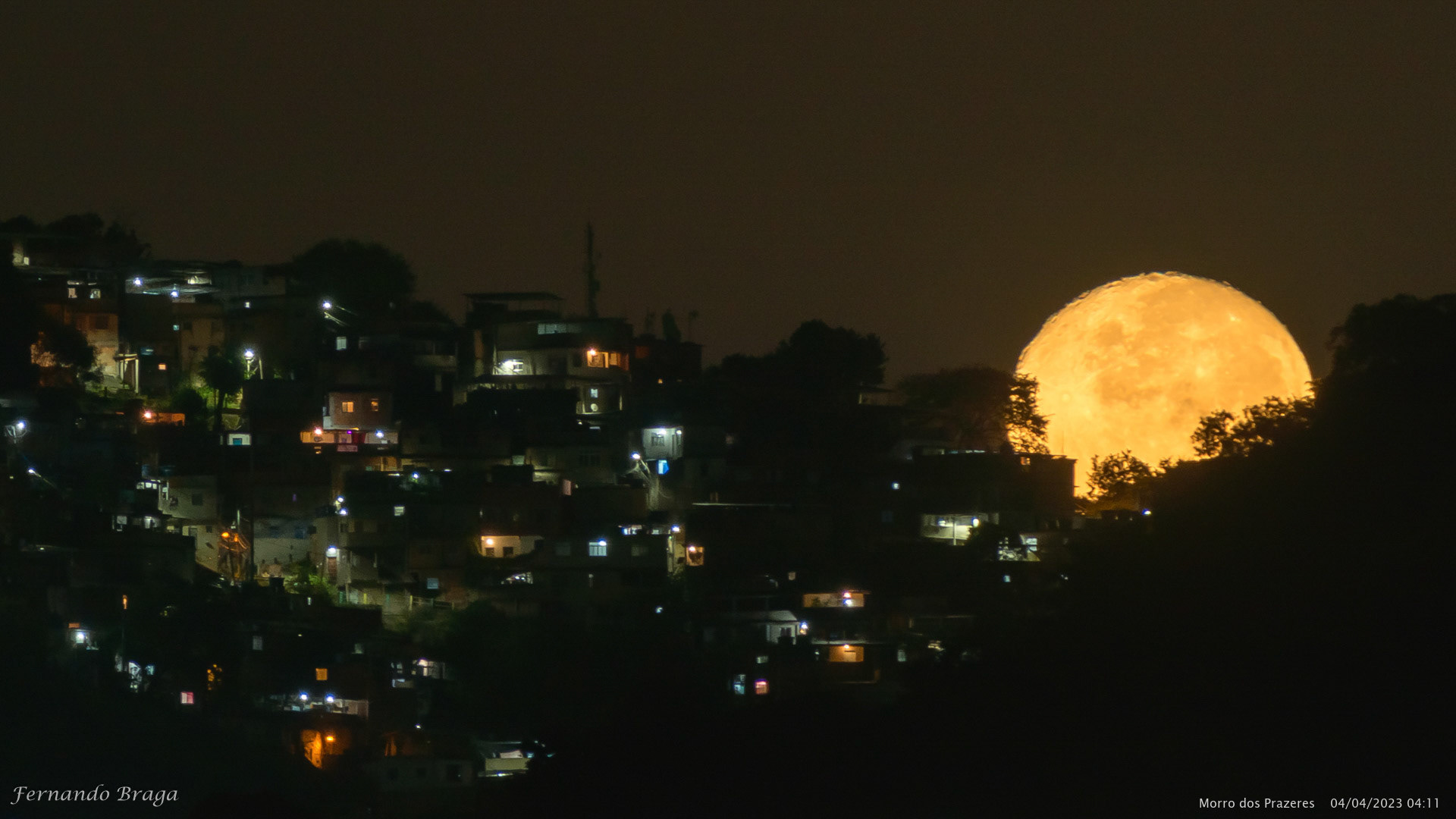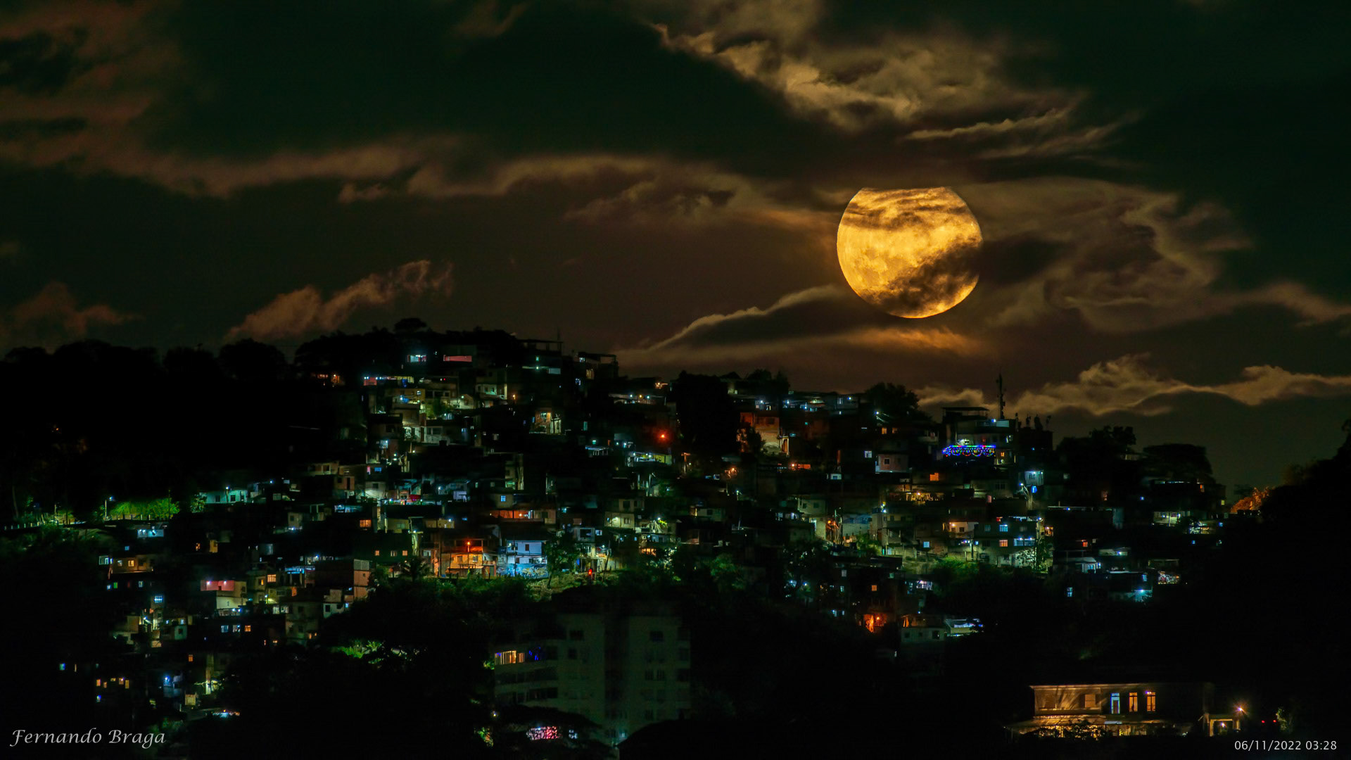 A Lua Cheia se pondo no Morro dos Prazeres em Santa Teresa, Rio de Janeiro/RJ.
