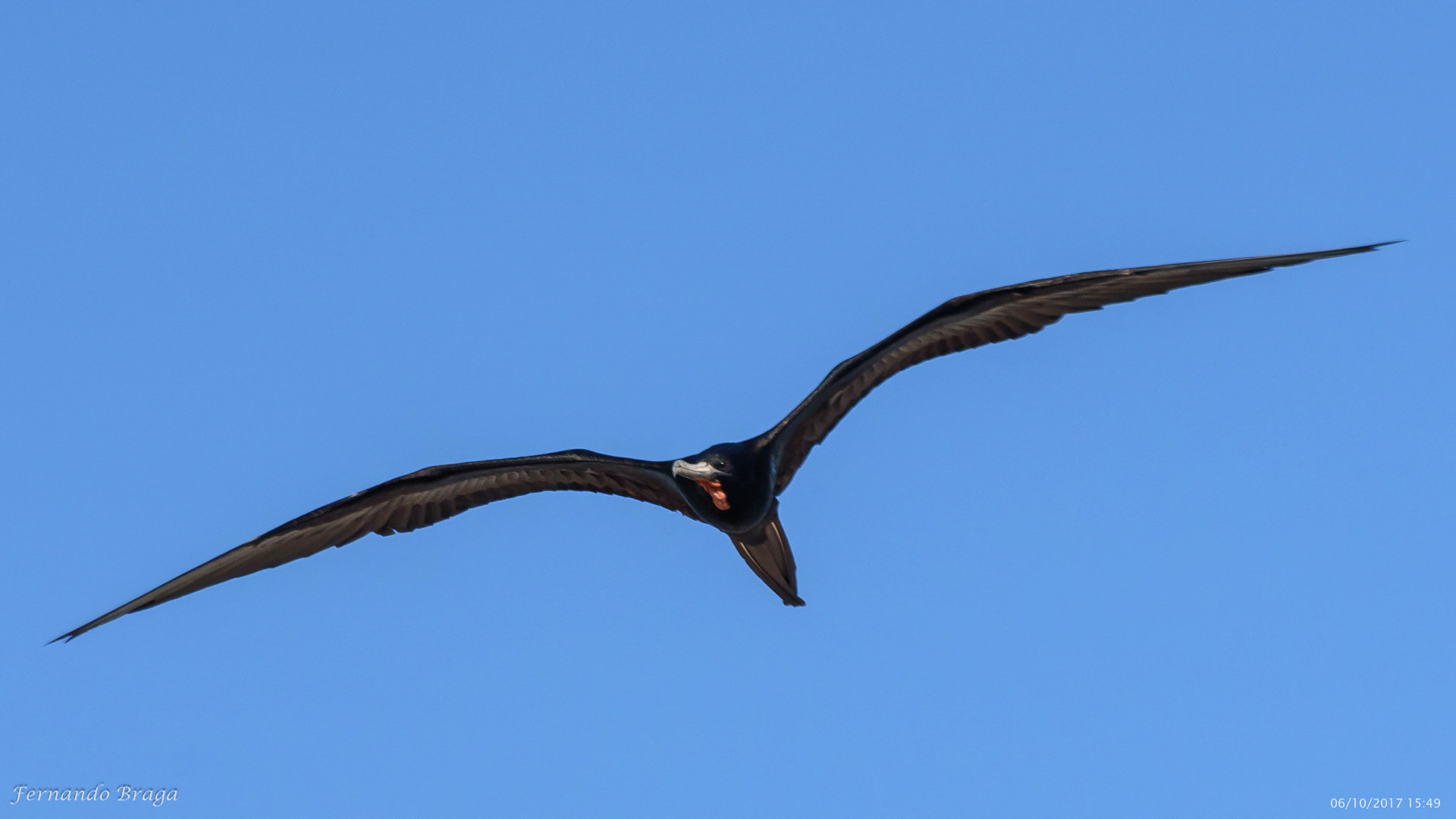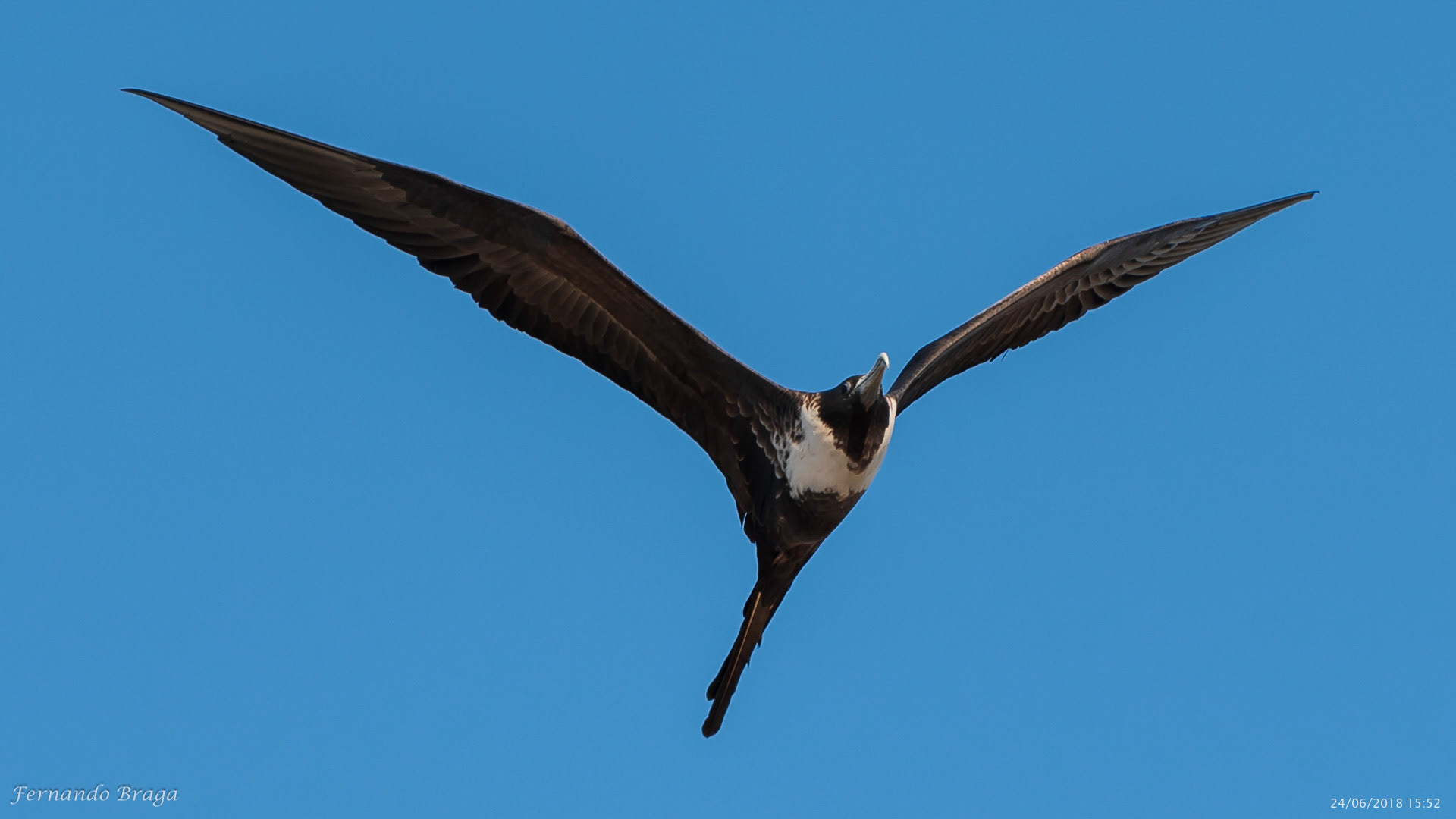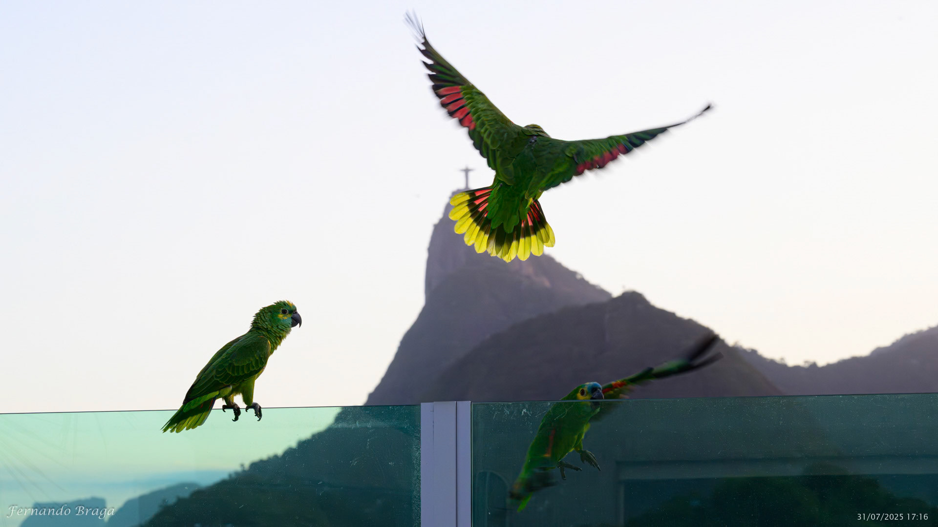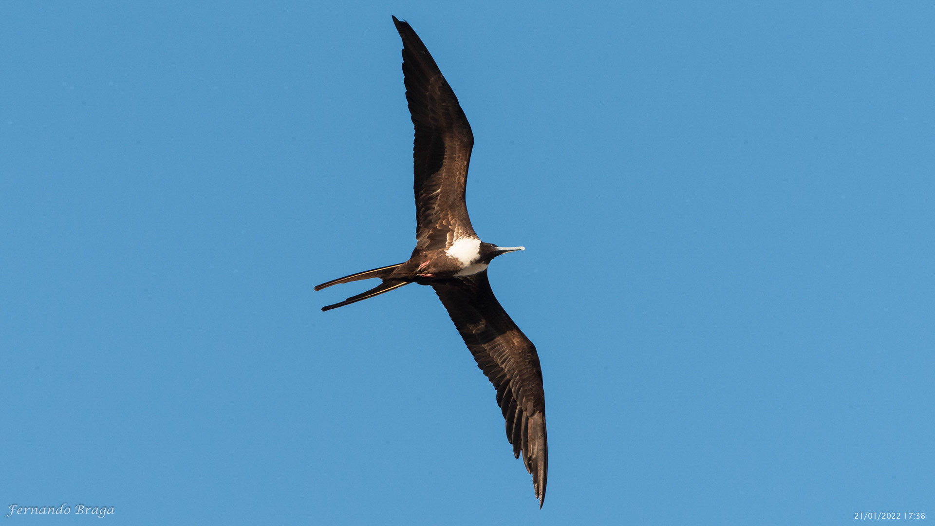Uma fragata voando sob os braços do Cristo Redentor no final de tarde.