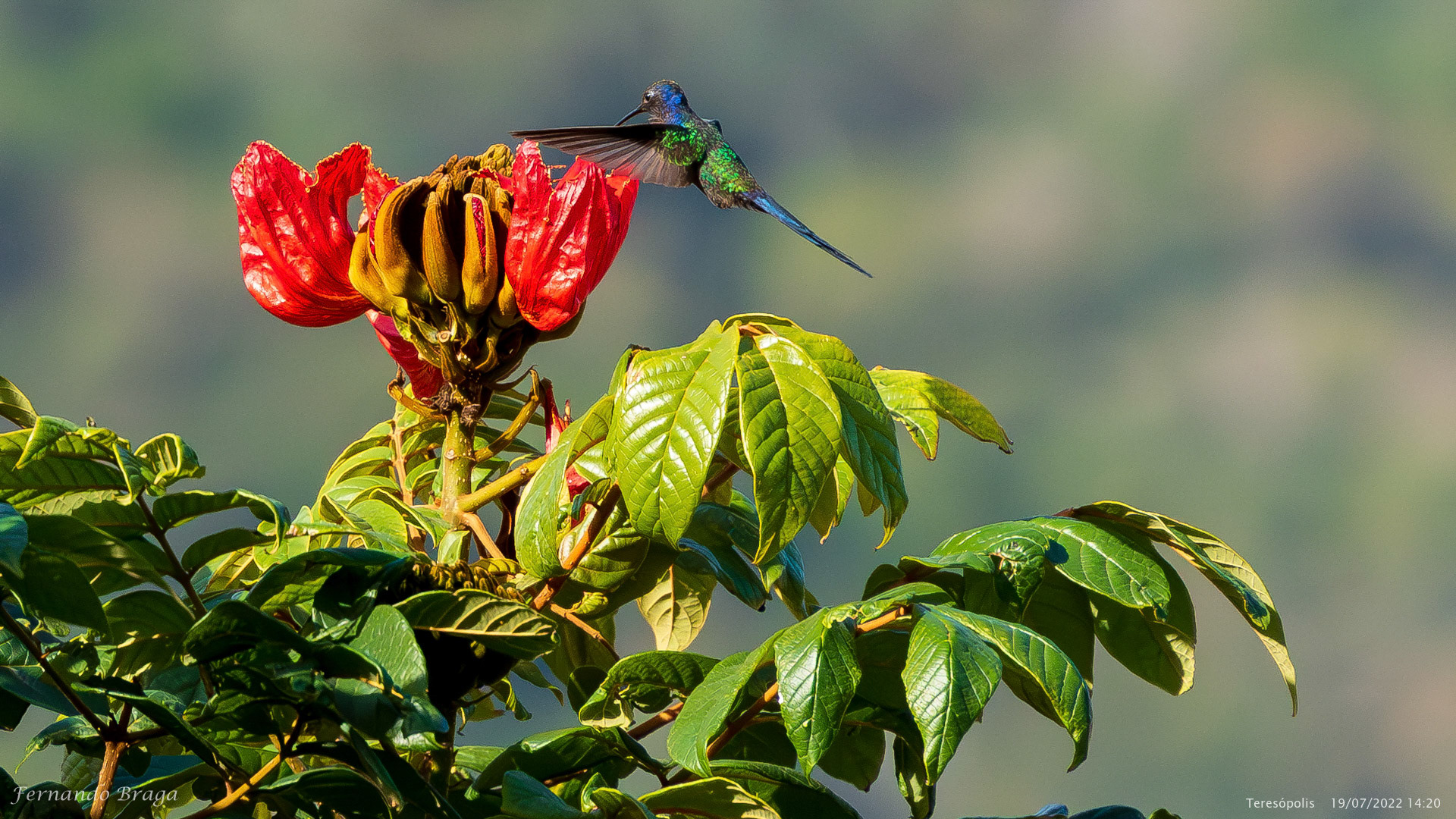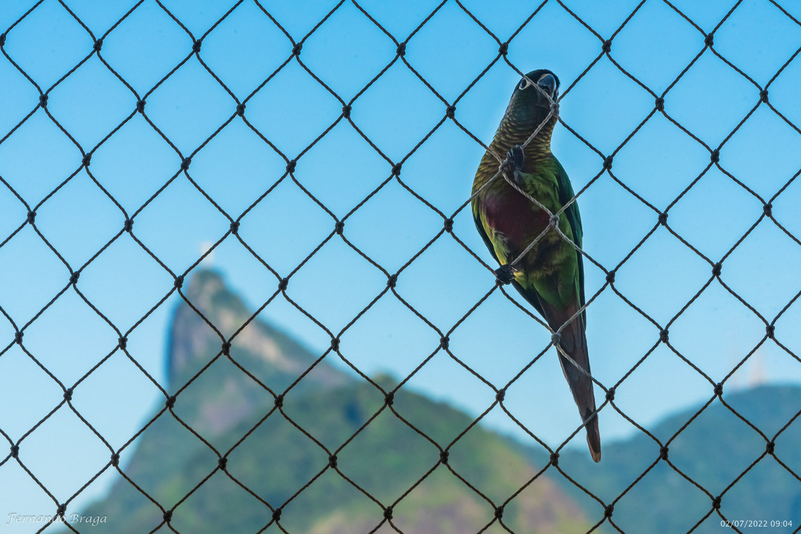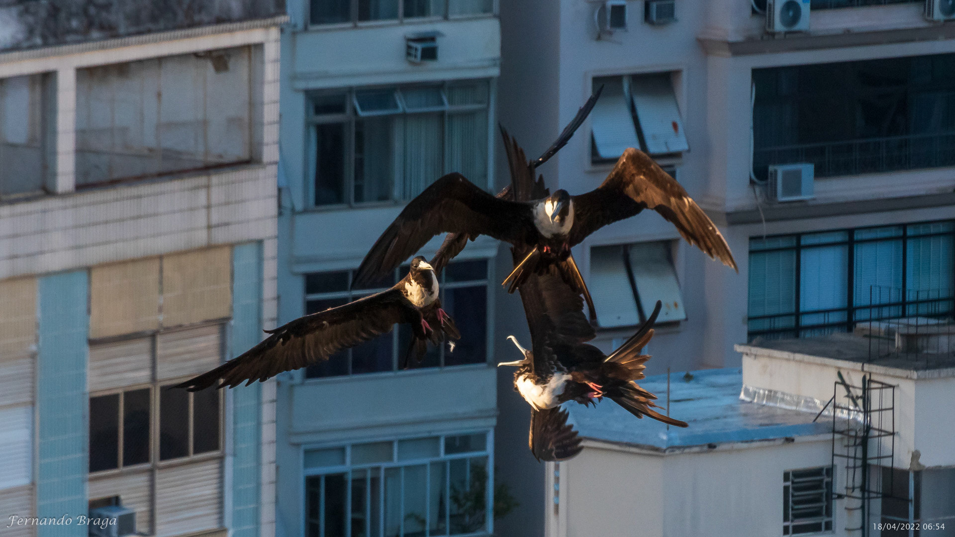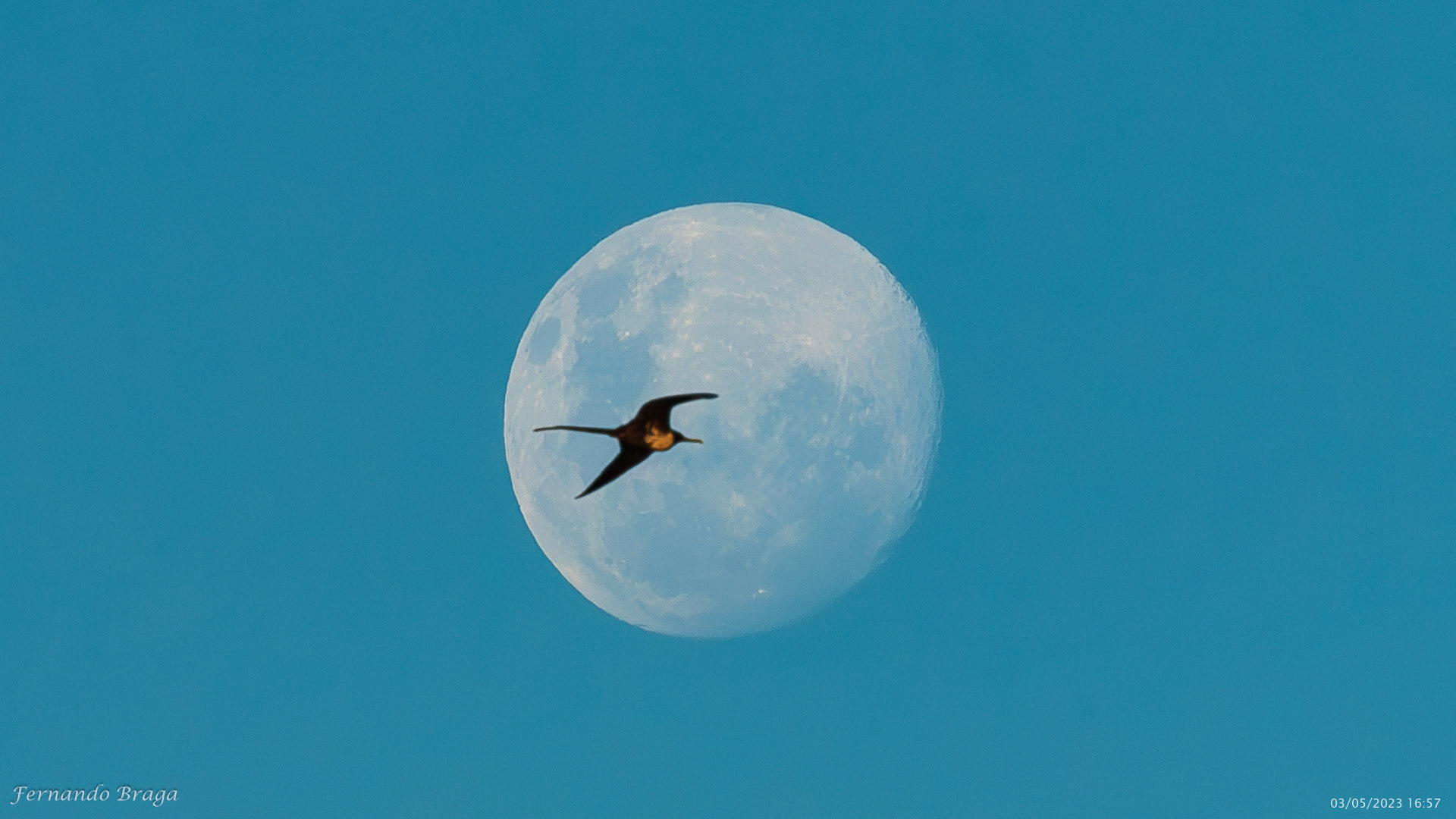 Uma fragata voando sob os braços do Cristo Redentor no final de tarde.
