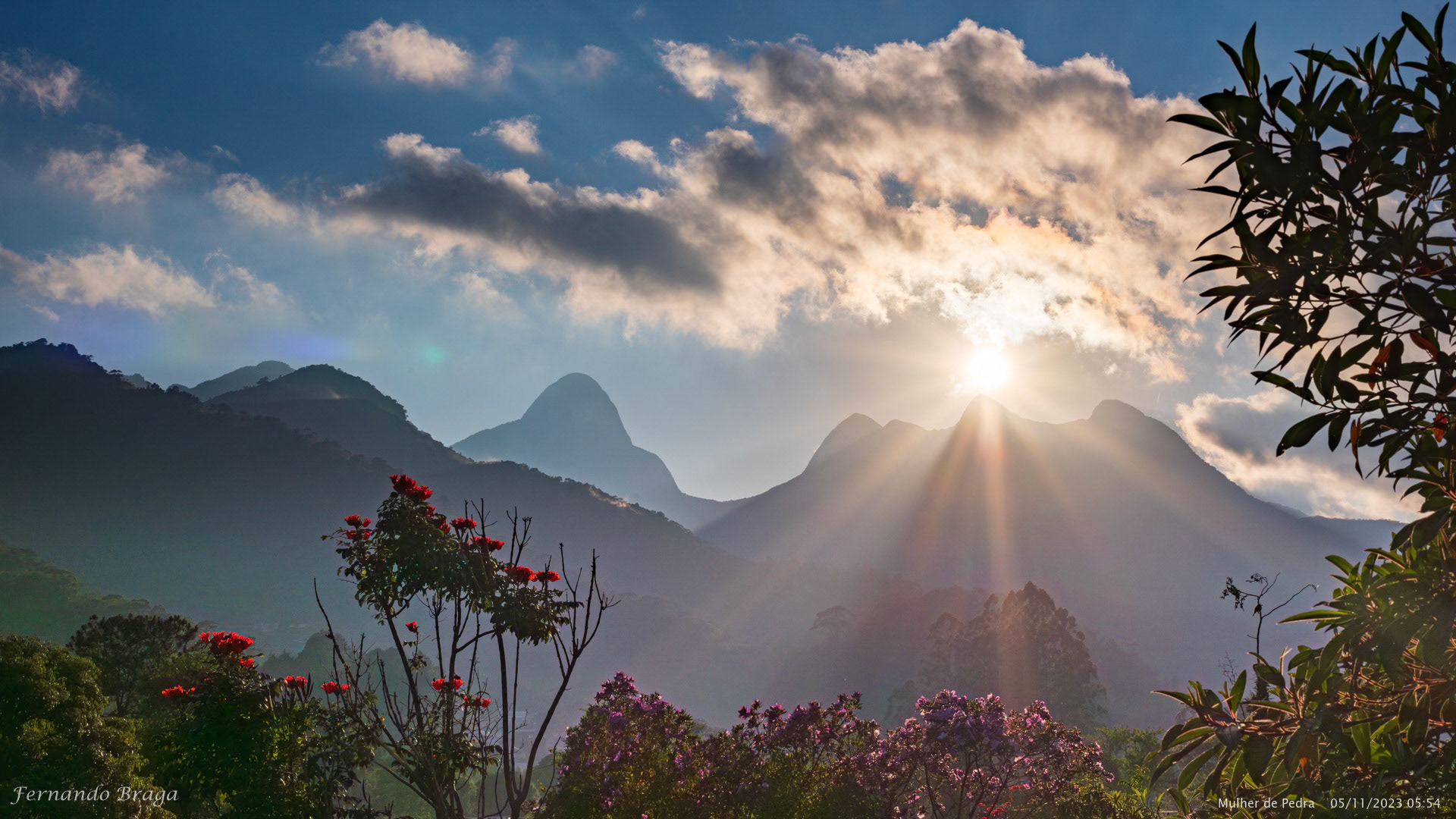 A Via Láctea e o planeta Vênus se posicionando no "Olho" da montanha Mulher de Pedra em Teresópolis/RJ.