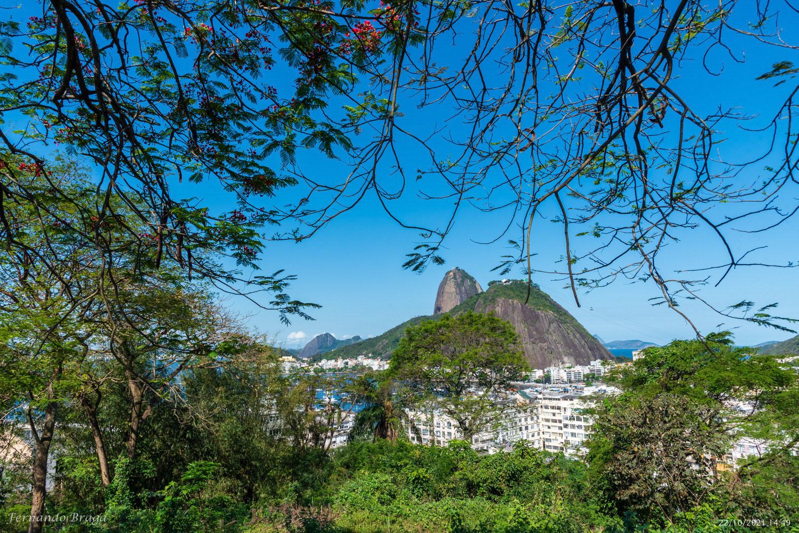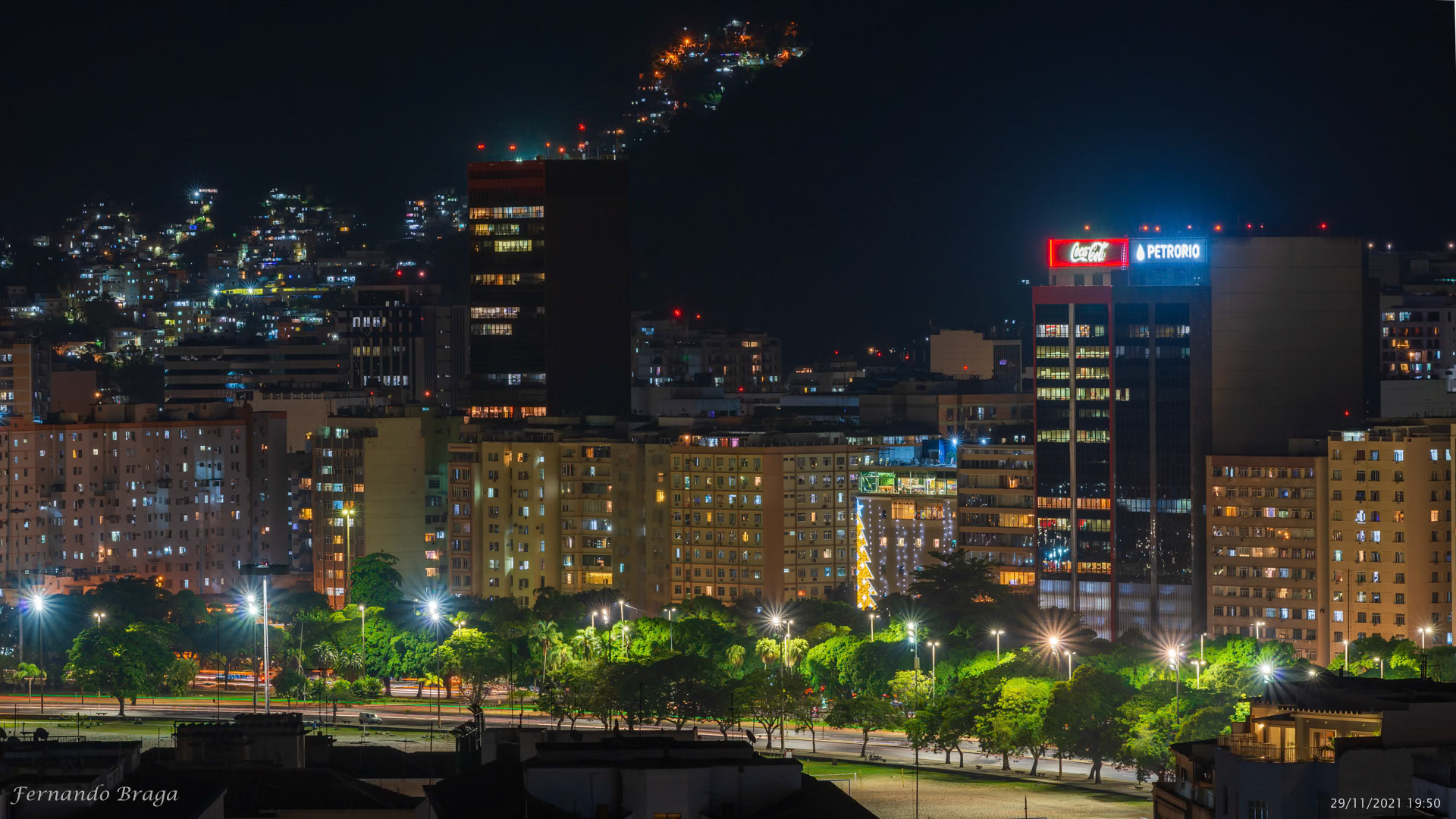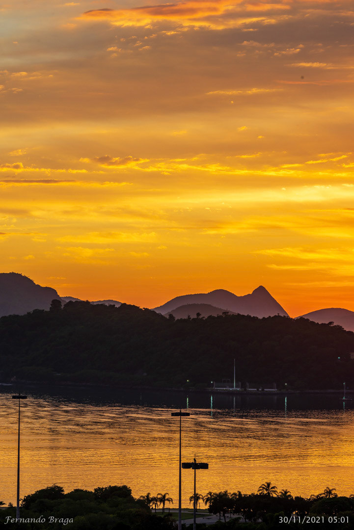 A Torre do Rio Sul com as lindas cores de um pôr do sol na Cidade Maravilhosa. Registro feito do Flamengo, Rio de Janeiro/RJ.