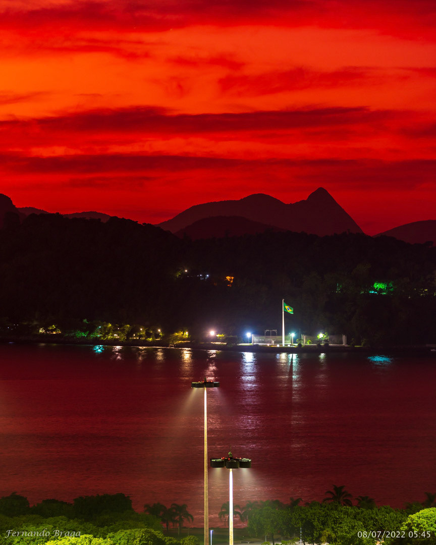 Registro dos efeitos do vulcão Tonga criando o Céu Vulcânico no Aterro do Flamengo